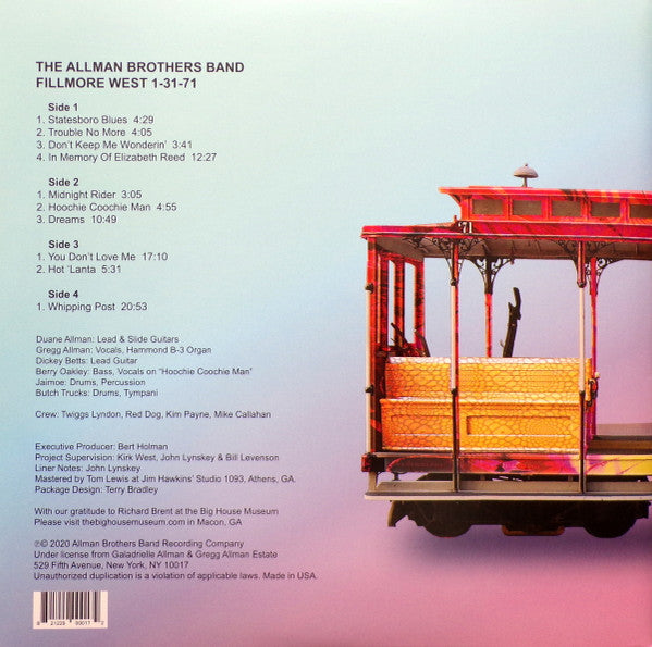 THE ALLMAN BROTHERS- FILLMORE WEST 1-31-71 - 2LP - LIMITED EDITION R.S. 2020 MINT* - USED VINYL